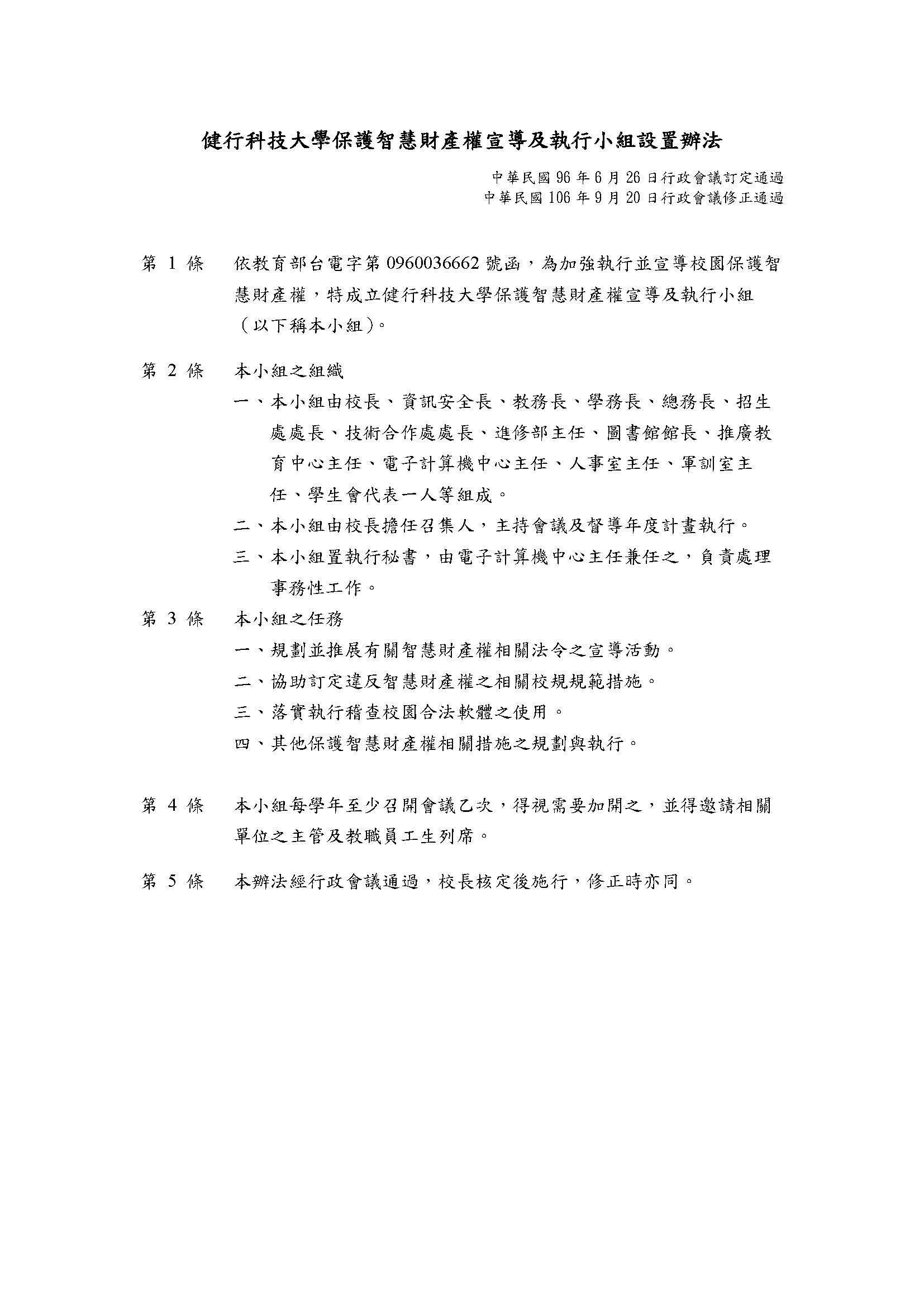 健行科技大學保護智慧財產權行動宣導及執行小組設置辦法